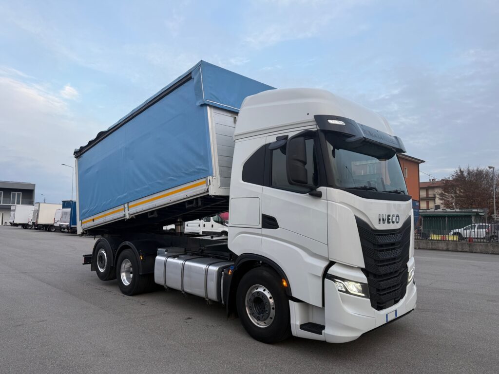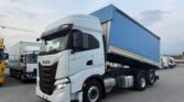 Motrice tre assi,cambio automatico, intarder, terzo asse sterzante, km 89.900, cassone ribaltabile tre lati usato, mt 6.20 x 2.46 x 2.15 h interno, centina alza/abbassa manuale, copri/scopri, passo 4200 mm