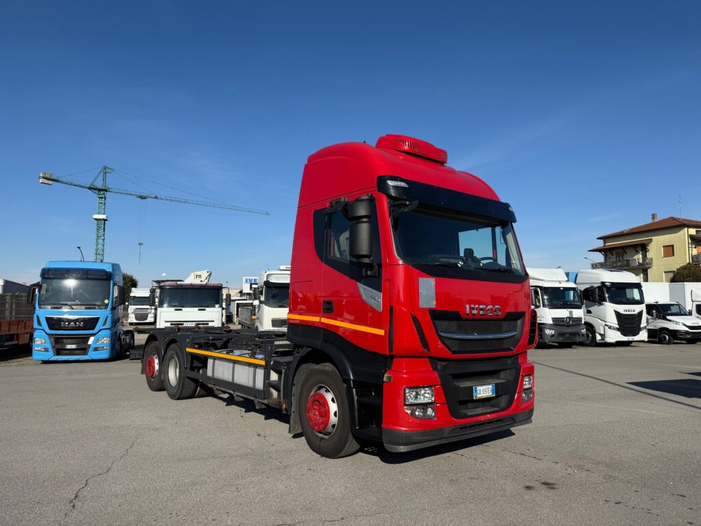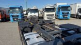 Motrice tre assi con impianto porta casse mobili, passo 4800 mm, terzo asse sollevabile/sterzante, cambio automatico, intarder, km 862.000, aria condizionata, sospensioni full pneumatiche