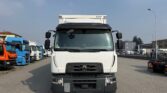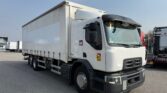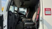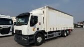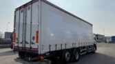 Motrice tre assi, cassone centinato alla francese mt 8.40 x 2.46 x 2.38h interno, teli scorrevoi laterali, porte posteriori, sponda idraulica retrattile Kg 2000, terzo asse fisso, cambio automatico, km 453.000